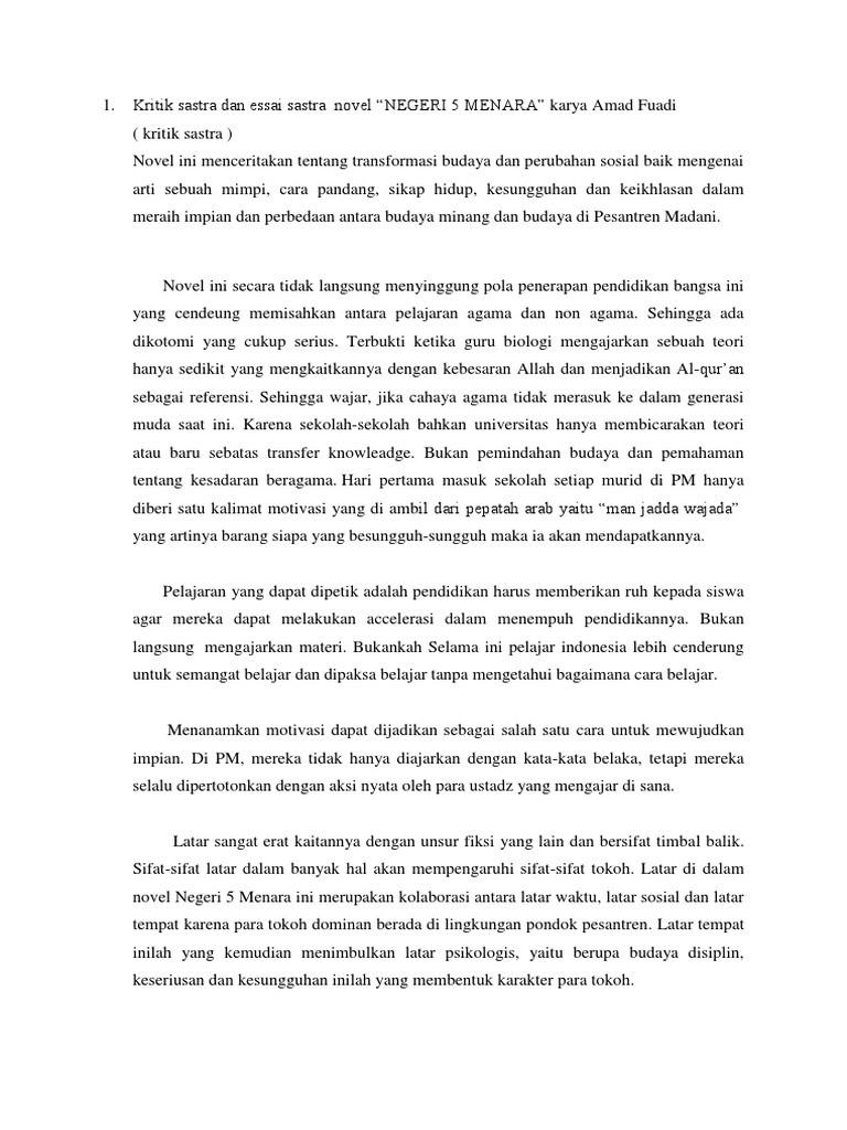 Contoh Kritik Sastra Dan Esai Masnurul from i0.wp.com Baca materi pada pertemuan lalu dan juga pertemuan kali ini sebagai panduan atau contoh dari tugas tersebut! Tema yang diangkat dari cerita tersebut adalah tentang pendidikan. Kesimpulan resensi novel adalah kegiatan mengupas atau membahas sebuah karya sastra novel dengan pertimbangan, penafsiran, mengkritik. Novel laskar pelangi merupakan buku pertama dari tetralogi laskar pelangi yang berjumlah 4 buah selain itu kritik sosial terhadap pemerintah juga sangat jelas digambarkan oleh penulis dengan kekurangan dari novel ini yakni terletak pada pengaburan waktu, tempat, dan nama tokoh dalam. Memberikan kritik dan esai dapat beromanfaat untuk memberikan panduan yang memadai kepada namun sayang, semua kisah indah laskar pelangi harus diakhiri dengan perpisahan seorang kritik. Novel laskar pelangi adalah salah satu novel karya andrea hirata yang merupakan serangkaian dari kumpulan 4 novel yang ceritanya saling berkelanjutan atau disebut tetralogi. Jika anda mencari contoh esai novel laskar pelangi maka anda berada di tempat yang tepat. Covernya menjadi daya tarik orang untuk membacanya.