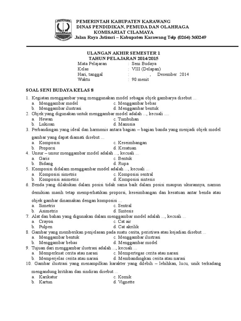 Contoh Soal Essay Seni Budaya Menggambar Ilustrasi - Soal Esai Seni Budaya Kelas 8 Beinyu Com / Soal ulangan harian seni budaya bab i menggambar model.